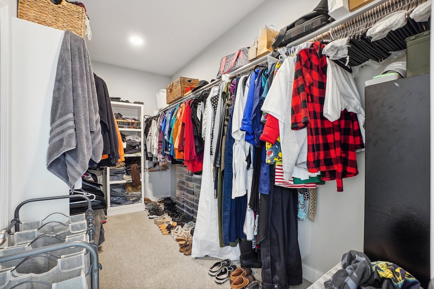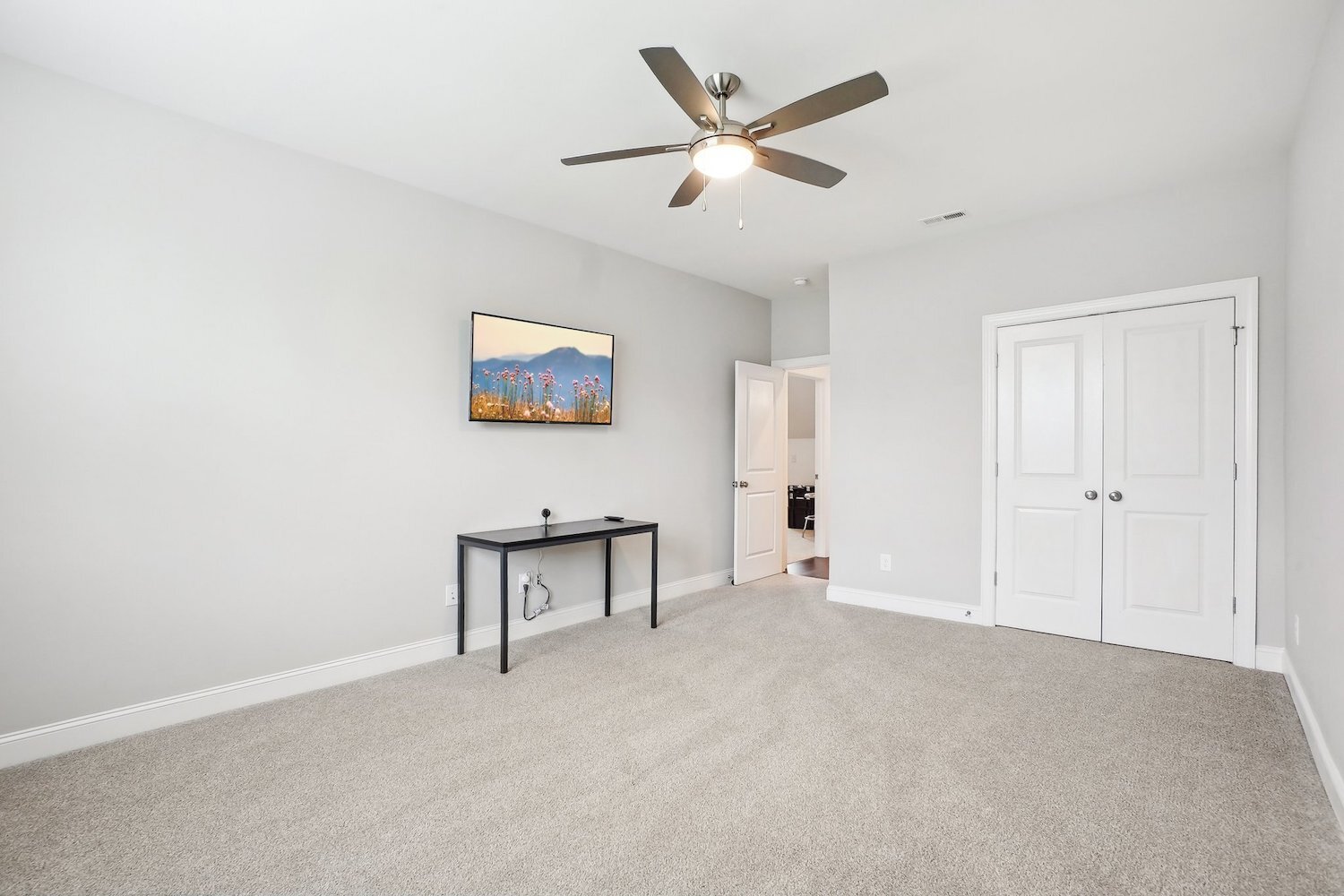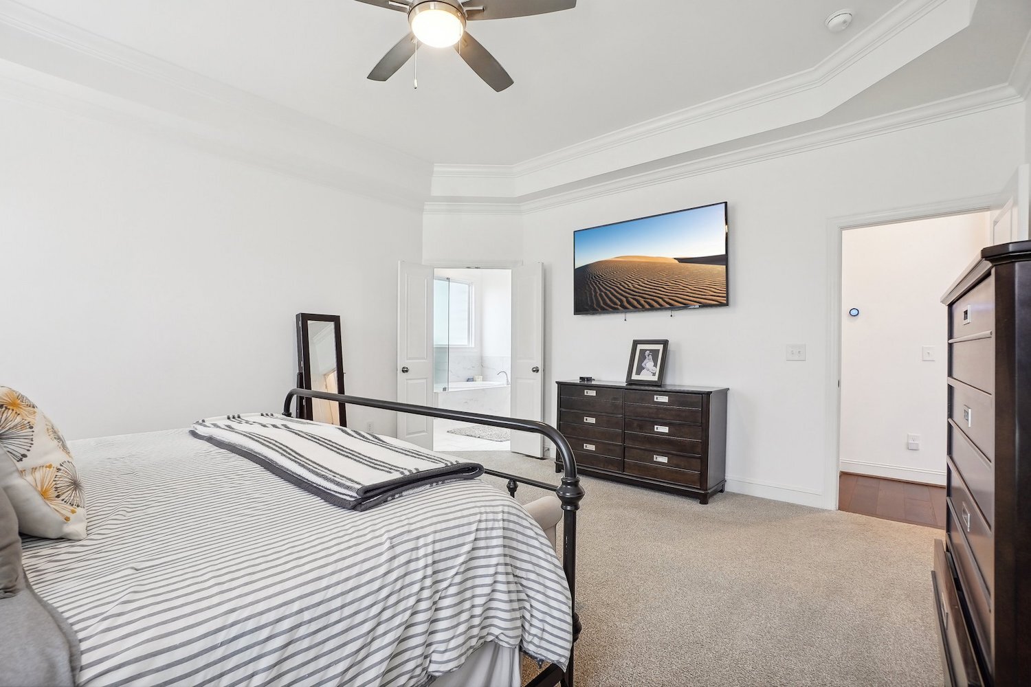 The main level features a spacious primary bedroom suite, offering a serene retreat with a spa-like en-suite bathroom.