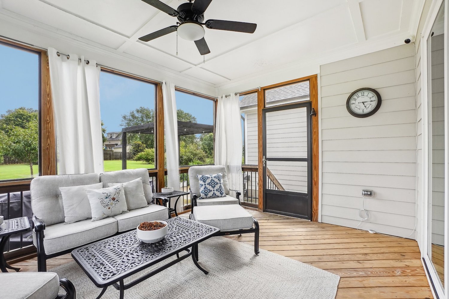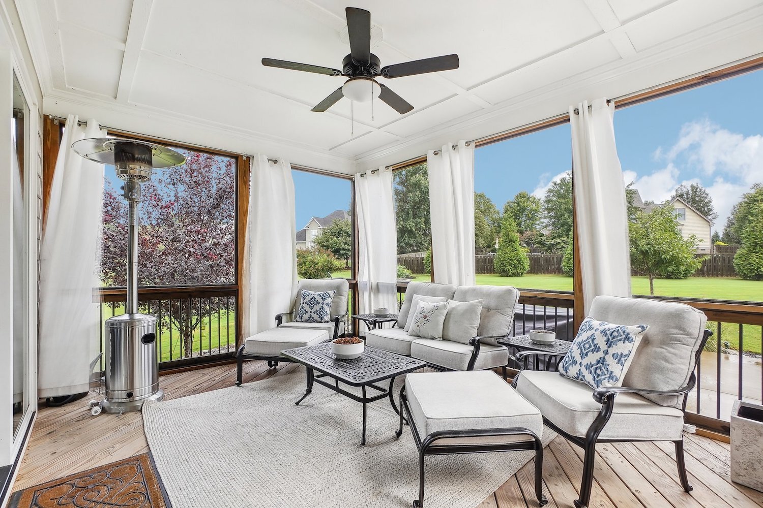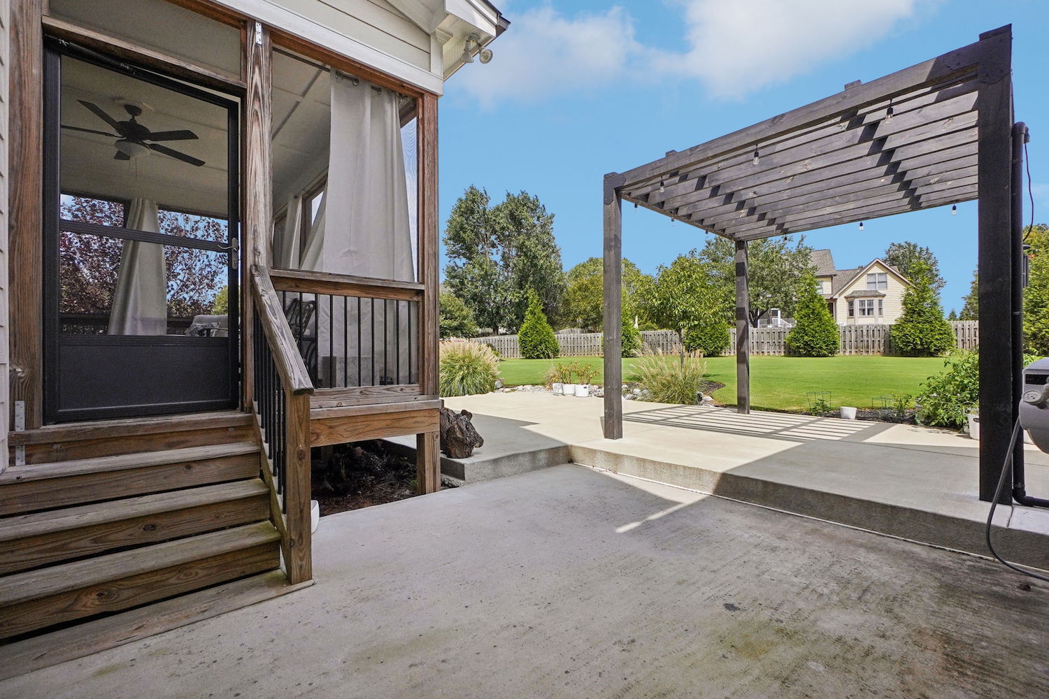 Step outside to a beautifully designed backyard featuring a screened-in porch, gas fire pit, and pergola—ideal for outdoor gatherings, and cozy evenings.