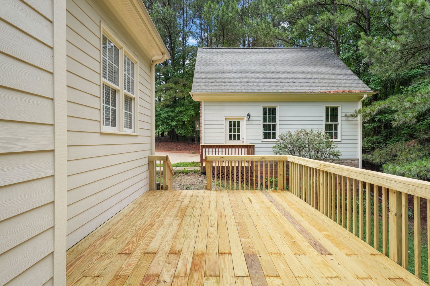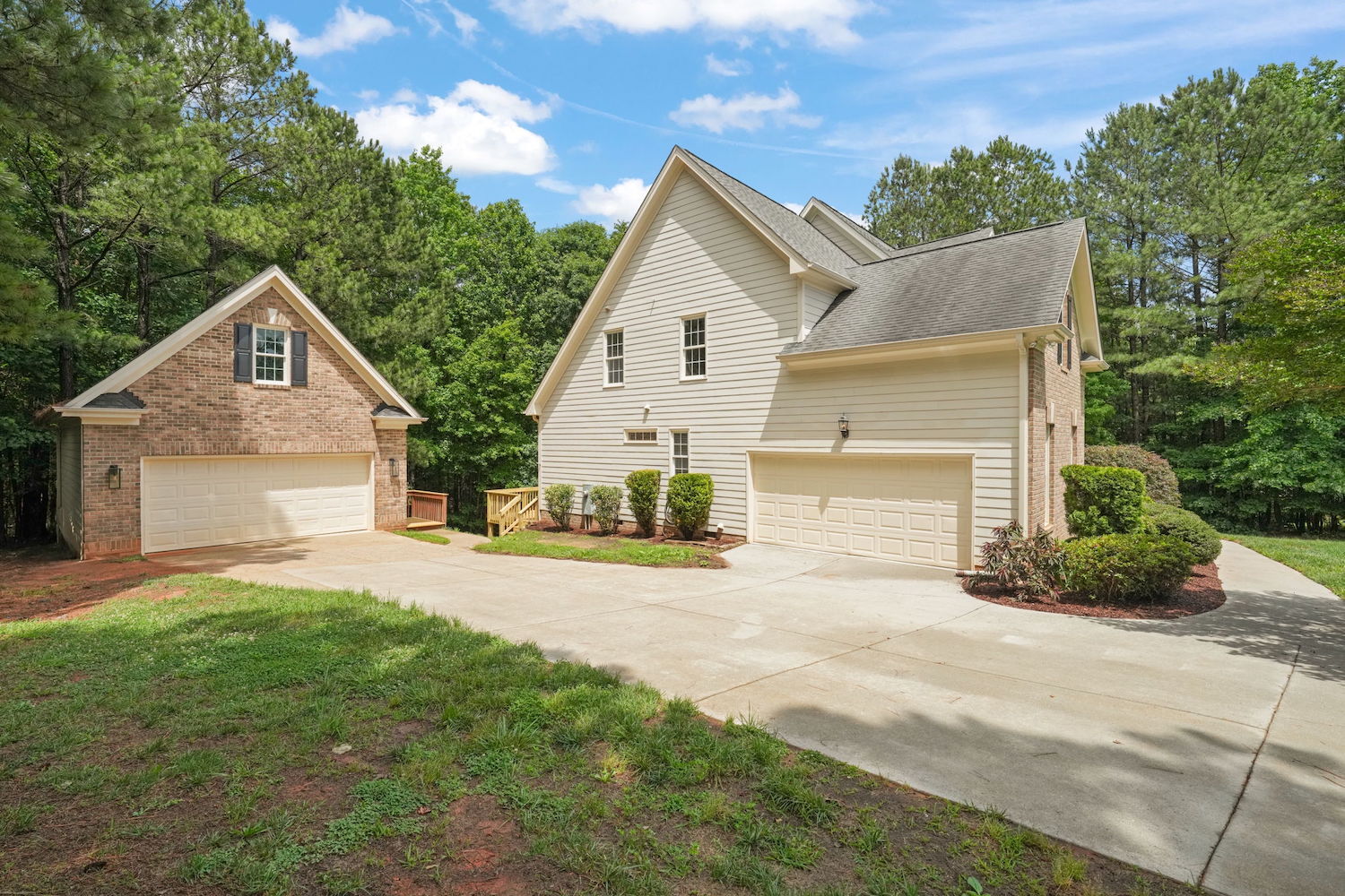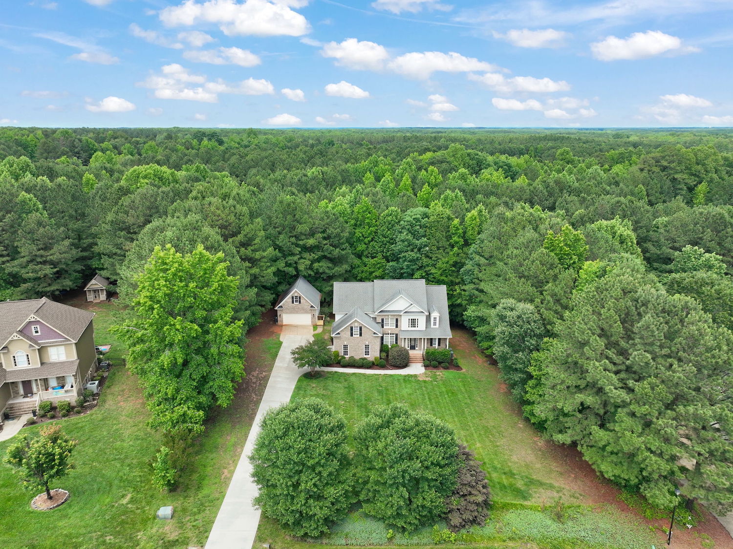 Beautifully updated 4-bedroom, 3-bath home nestled on a private, wooded 0.92-acre lot—with no city taxes! Step inside to fresh interior paint, gleaming refinished hardwood floors, and brand-new carpet throughout. Enjoy the outdoors from the newly built deck or unwind on the peaceful screened porch. Inside, a dramatic 2-story living room features a cozy gas log fireplace, while the stunning kitchen impresses with granite countertops, a tile backsplash, generous cabinet space, and a bright breakfast nook with a Palladian window. The first-floor primary suite offers a tray ceiling, dual vanity, soaking tub, and separate shower for a spa-like feel. Upstairs, you'll find a spacious bonus room with built-ins, a walk-in closet, and a separate office or flex space—perfect for working from home or hobbies. The property also includes both an attached 2-car garage and a detached 2-car garage/workshop—ideal for extra storage, a boat, or your next project. Enjoy access to the community pool and a prime location just minutes from US-1, Raleigh, and everyday conveniences. Downtown Franklinton's dining and entertainment are just 6 miles away!