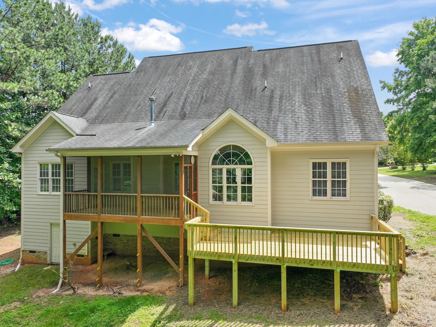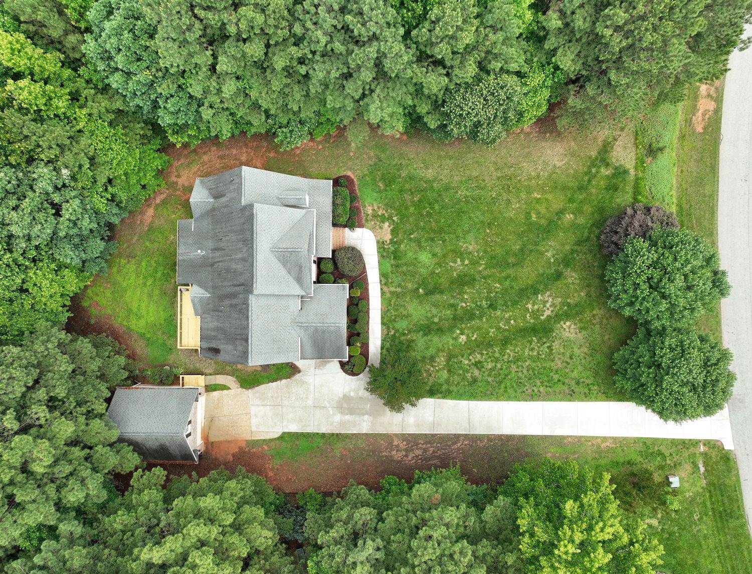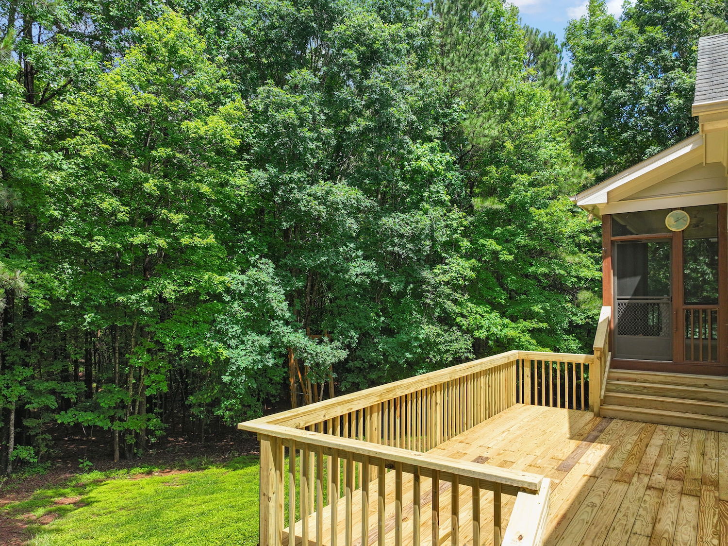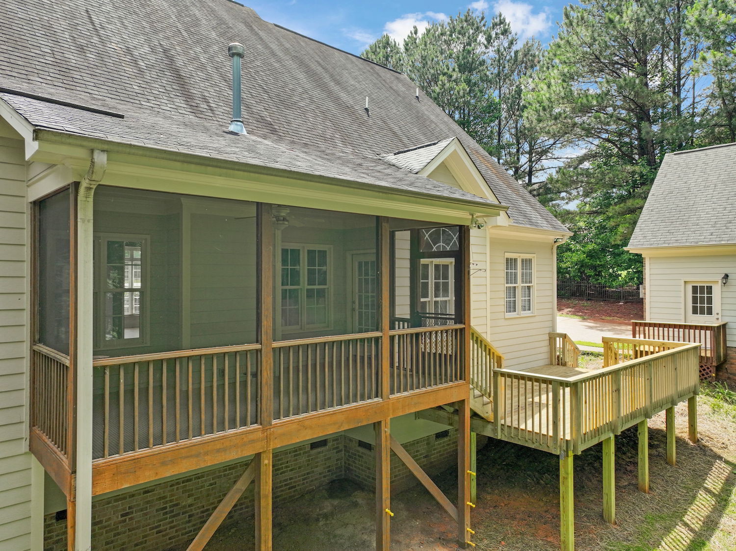 Beautifully updated 4-bedroom, 3-bath home nestled on a private, wooded 0.92-acre lot—with no city taxes! Step inside to fresh interior paint, gleaming refinished hardwood floors, and brand-new carpet throughout. Enjoy the outdoors from the newly built deck or unwind on the peaceful screened porch. Inside, a dramatic 2-story living room features a cozy gas log fireplace, while the stunning kitchen impresses with granite countertops, a tile backsplash, generous cabinet space, and a bright breakfast nook with a Palladian window. The first-floor primary suite offers a tray ceiling, dual vanity, soaking tub, and separate shower for a spa-like feel. Upstairs, you'll find a spacious bonus room with built-ins, a walk-in closet, and a separate office or flex space—perfect for working from home or hobbies. The property also includes both an attached 2-car garage and a detached 2-car garage/workshop—ideal for extra storage, a boat, or your next project. Enjoy access to the community pool and a prime location just minutes from US-1, Raleigh, and everyday conveniences. Downtown Franklinton's dining and entertainment are just 6 miles away!